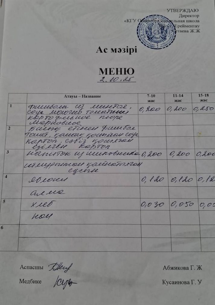 Ас мәзірі 02.10.2025