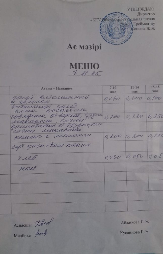 "Ақмола облысы білім басқармасының Ерейментау ауданы бойынша білім бөлімі Ерейментау қаласының №1 жалпы орта білім беретін мектебі"  коммуналдық мемлекеттік мекемесі