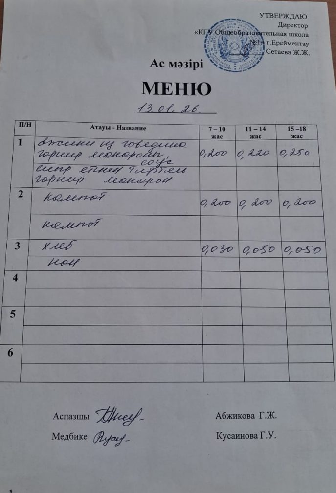 Мәзір 13.01.2026